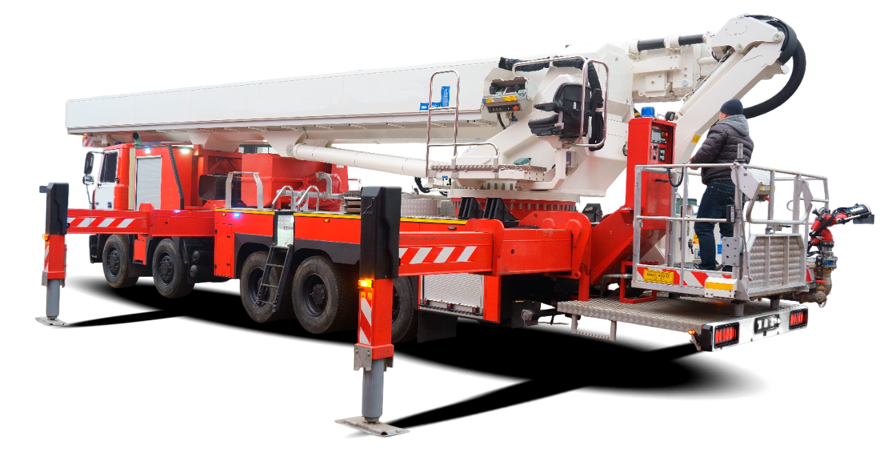 Автоматическая система выравнивания; напорные патрубки в задней части платформы; лафетный ствол с дистанционным управлением в люльке; гребенка для подключения 6 ГПС